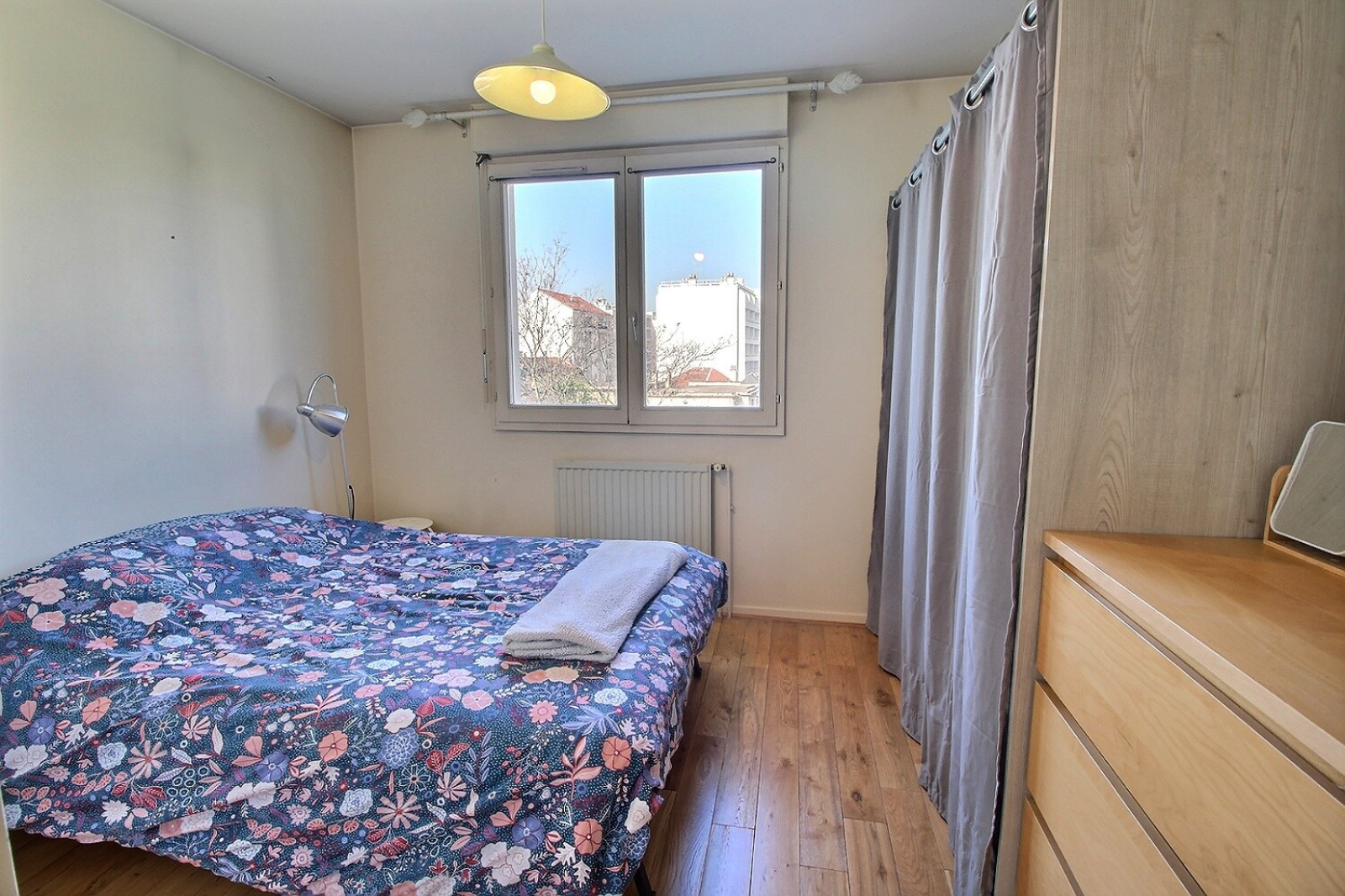 MONPLAISIR. Rue des Tuiliers. Dans ce quartier très recherché à 2min à pied du métro. Joli T2 AVEC GARAGE donnant côté jardin de 45 m2 très lumineux, calme et sans vis à vis. Au 4ème étage avec ascenseur, au sein d'une copropriété très bien entretenue datant de 1992. L'appartement se compose d'une entrée avec un grand placard (2m2), un toilette séparé. Un séjour avec cuisine ouverte aménagée. Une chambre avec placard et sa salle de douche. Le bien bénéficie d'un garage privatif en sous-sol et d'une cave. Double vitrage. Rafraichissement à prévoir. Très bon DPE. Surface carrez: 44,67m2 Proche de toutes commodités. Charges mensuelles : 90 euros par mois Taxe foncière : 1005 euros Pas de procédure en cours ni de gros travaux prévus.
