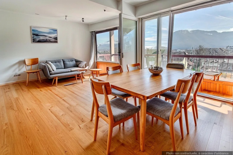 Situé au 4ème et dernier étage avec ascenseur, vous serez séduit par cette vue panoramique sur les montagnes d'Annecy.